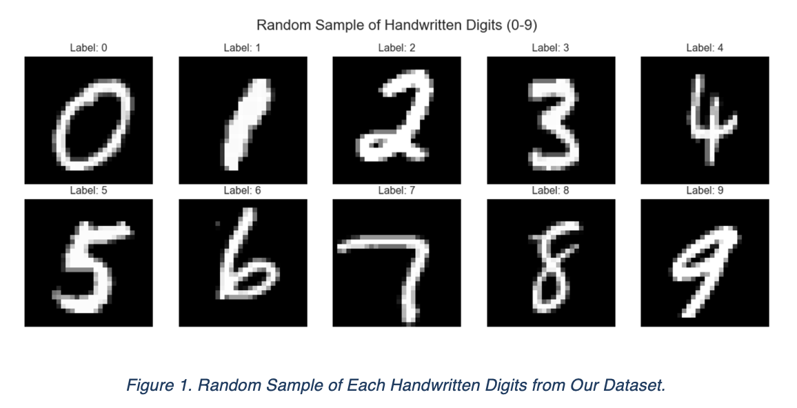 Our dataset is sampled from the original MNIST dataset, consists of 5000 greyscale images of handwritten digits from 0 to 9, where each image has a resolution of 28x28 pixel that being flattened into a vector of 784 dimensions.