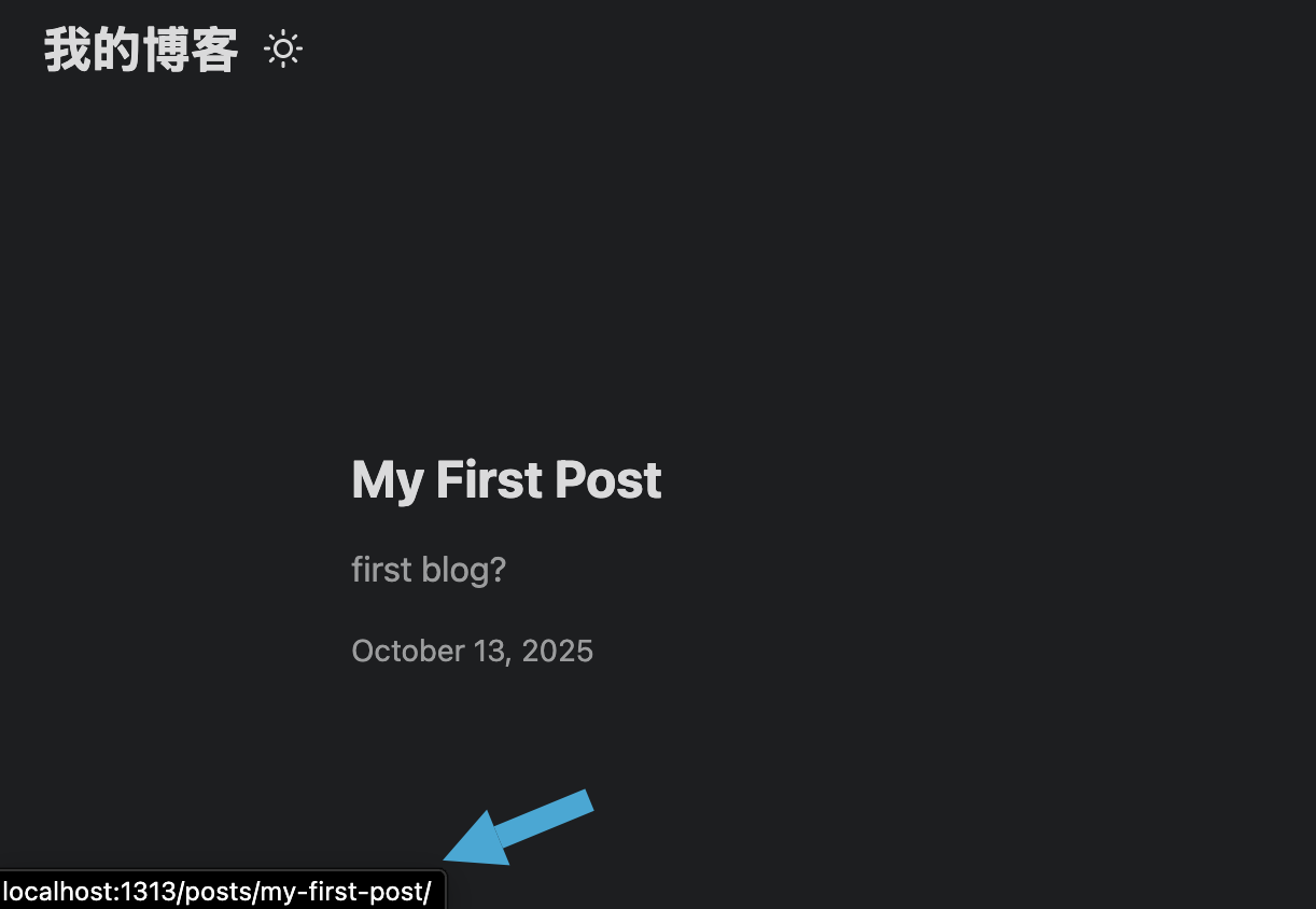 Your post will appear. Any saved changes in the `.md` file will refresh automatically in the browser.