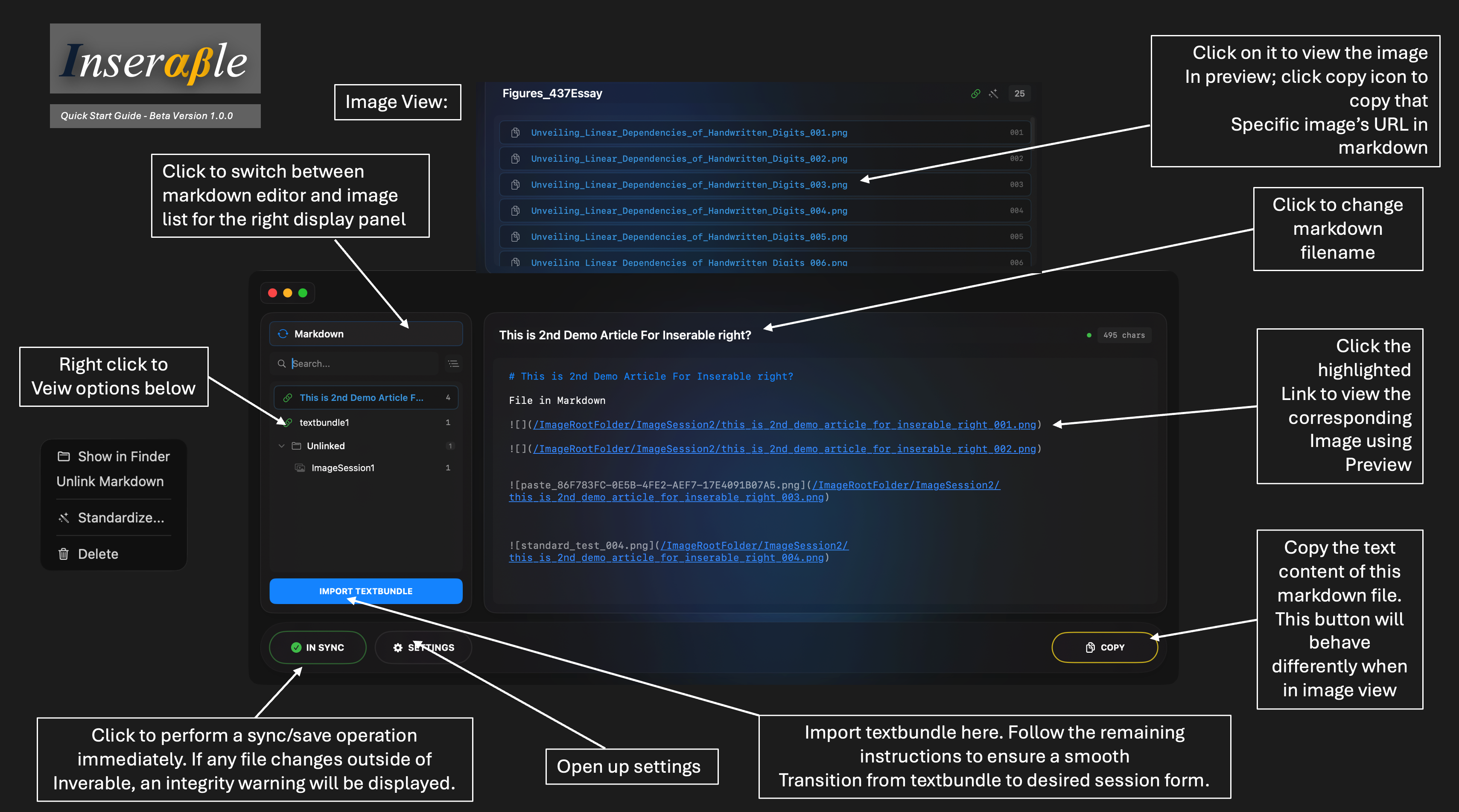 - Inserable will automatically extracts images and Markdown content. Then, session relationship is established between them.