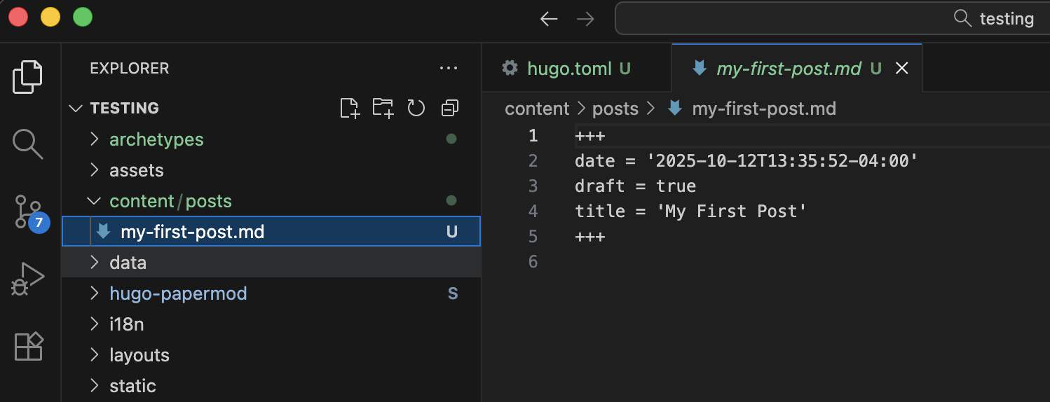 hugo new content posts/my-first-post.md