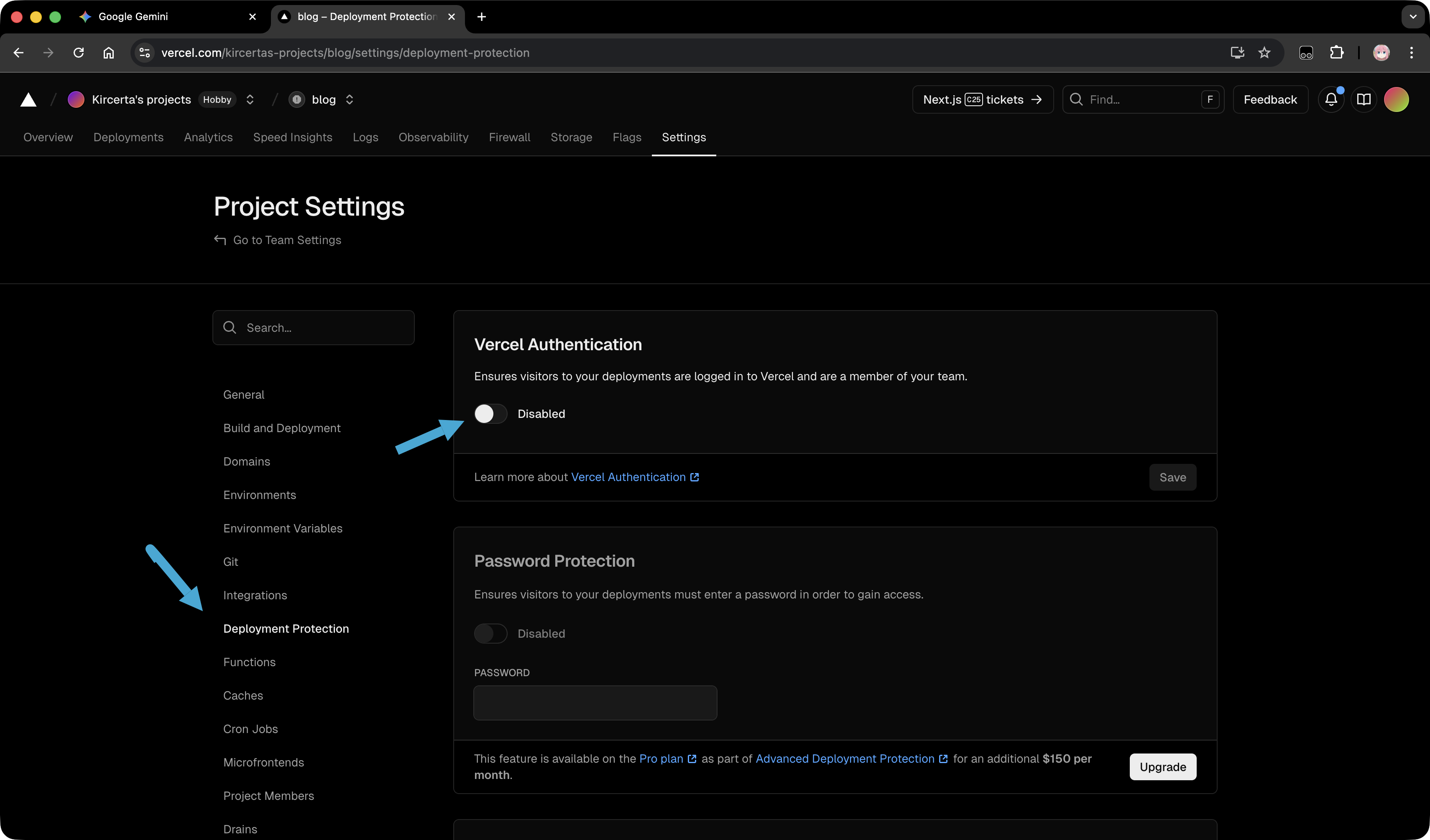 首先,你需要在Vercel里关闭这个选项让blog对所有人可见。