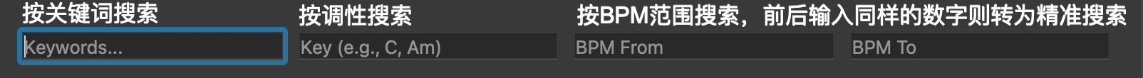 • 由于调性命名的复杂性以及搜索逻辑本身的局限,使用者需暂时按照我设计的语法进行精准的采样搜索。