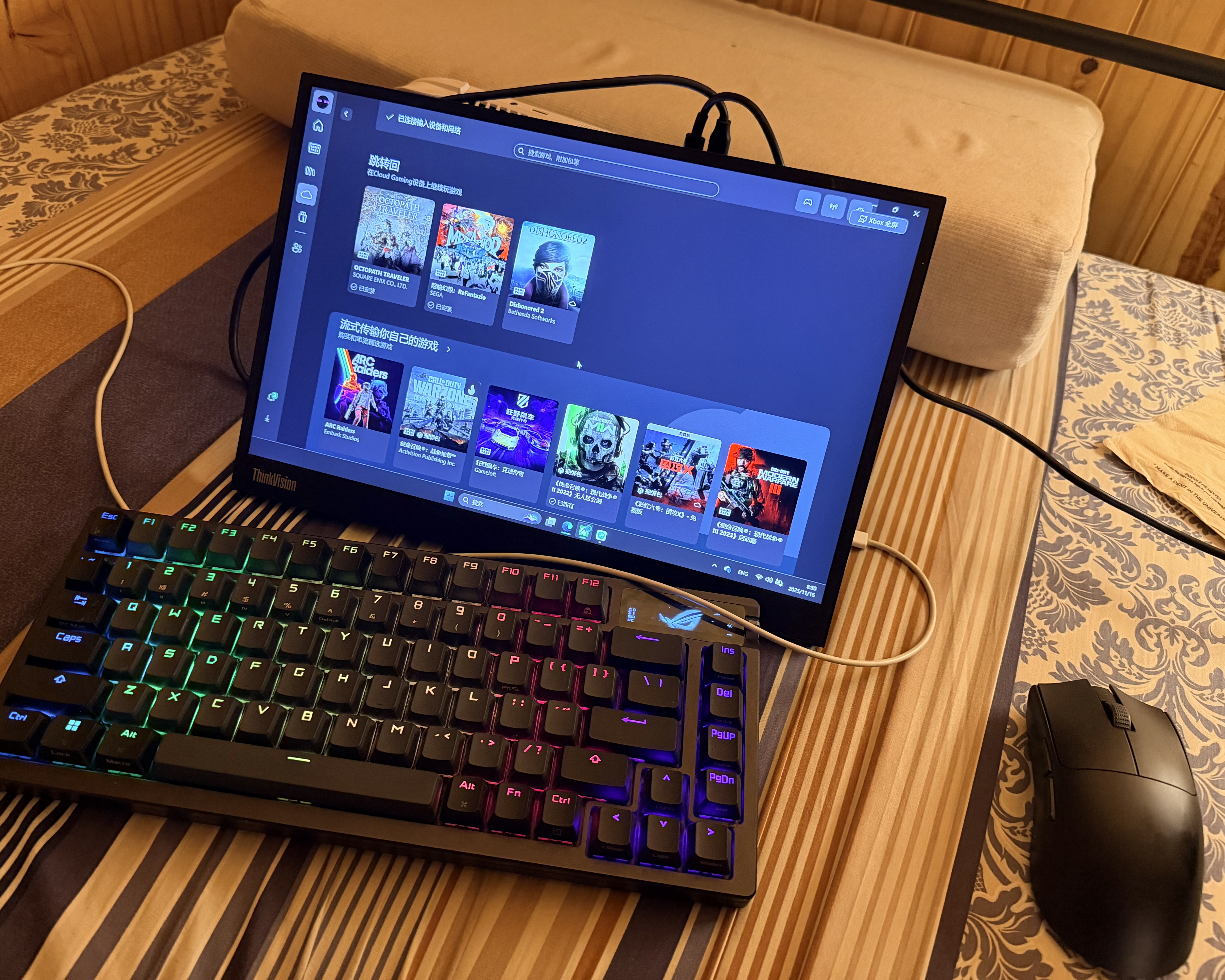 硬件形态,既然体积受限,那不妨模仿PS Portal的形态但做得更彻底:打造一个只有屏幕、手柄、电池的轻量化机器,专门用于本地PC串流。通过高速、低延迟的协议,将你台式机上的画面串流过来。如果技术暂时不允许,也可以通过Type-C传输视频信号并供电。这样一来,掌机甚至可以去掉电池和大部分处理组件以减轻重量。反正当前的掌机离电场景的续航也很糟糕,不如将计就计接受这根线的存在,然后再于其它方向去想办法。分离负责输入输出的部分和负责信息处理的部分,也就能允许你避开很多当前阶段掌机很尴尬的地方。即便出门时,也可以让其连接(游戏)笔记本电脑,由笔记本负责运算。