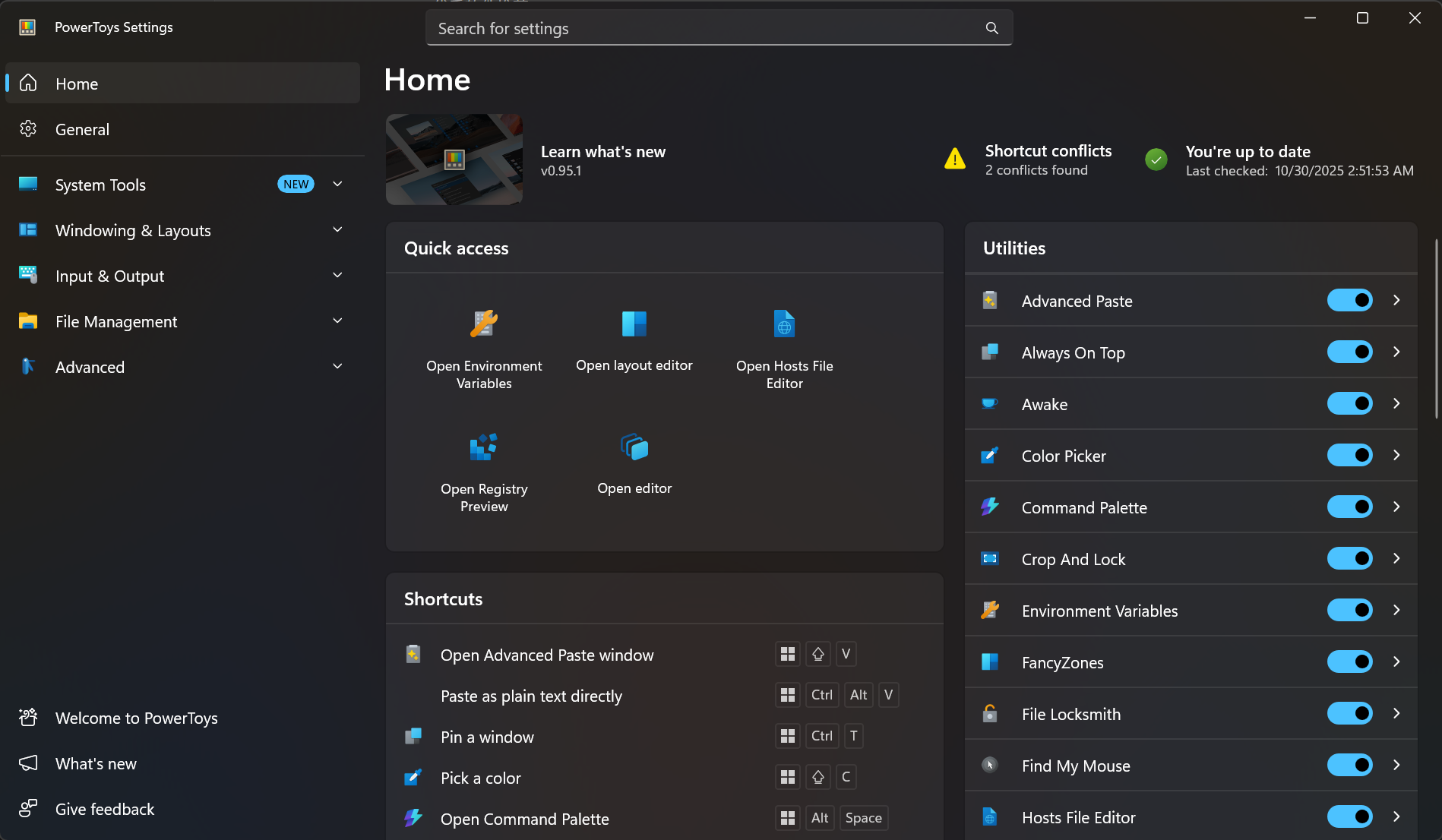刚刚提到的还只是PowerToy功能的冰山一角,这个软件实际上能做的事情比重映射快捷键要多多了。未来也许等我更加了解它后,有必要专门为此写一个新的文章进行介绍。但需要注意的是,PowerToy目前仍然处于测试阶段。我在使用过程中有遇到过闪退现象。